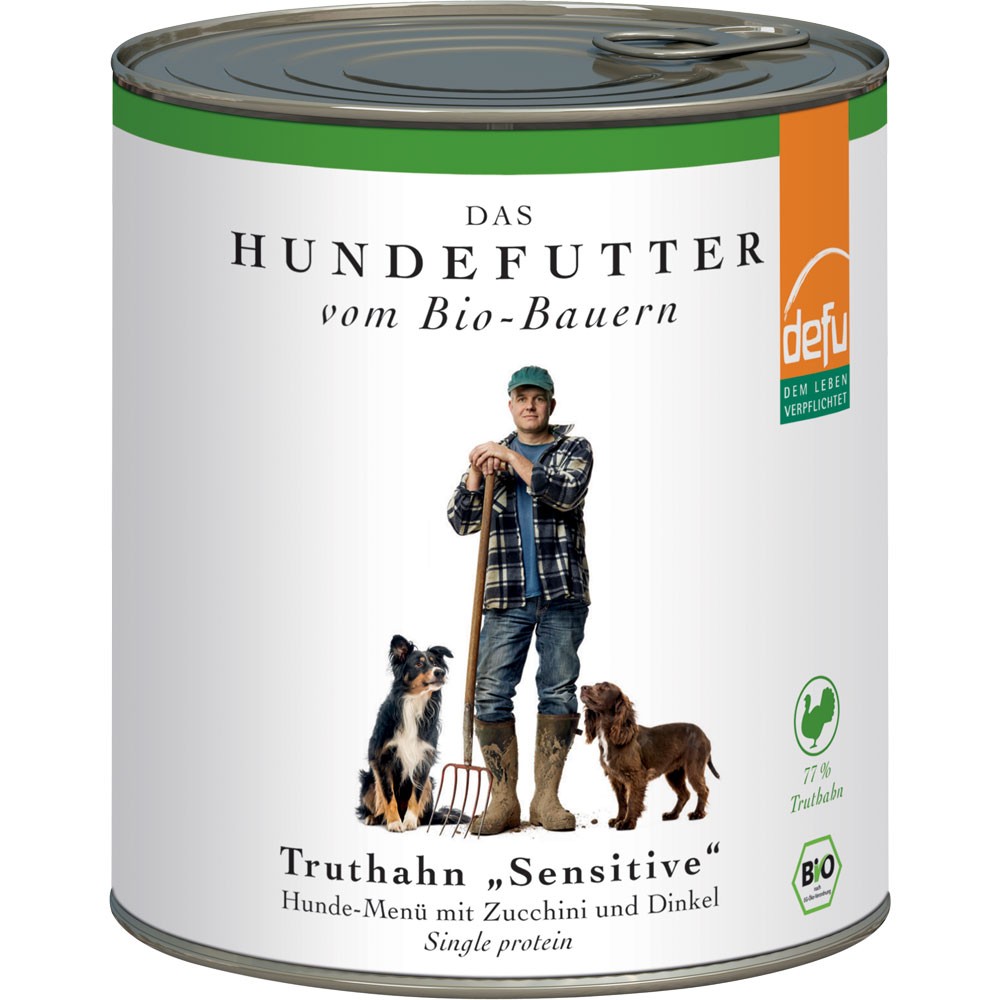 Das Hunde-Menü Truthahn Sensitive ist eine kräftige Komposition aus 77 % magerem Bio-Truthahn und gehaltvollem Dinkel. Dank leckerer Zucchini und schmackhaftem Kürbis ist das Menü reich an Ballaststoffen. Da es nur eine einzige Proteinquelle enthält, ist es ideal geeignet als tägliches Futter für sensible Hunde, die zu Allergien neigen. Zusätzlich wurde das Menü mit Lichtwurzel verfeinert.
